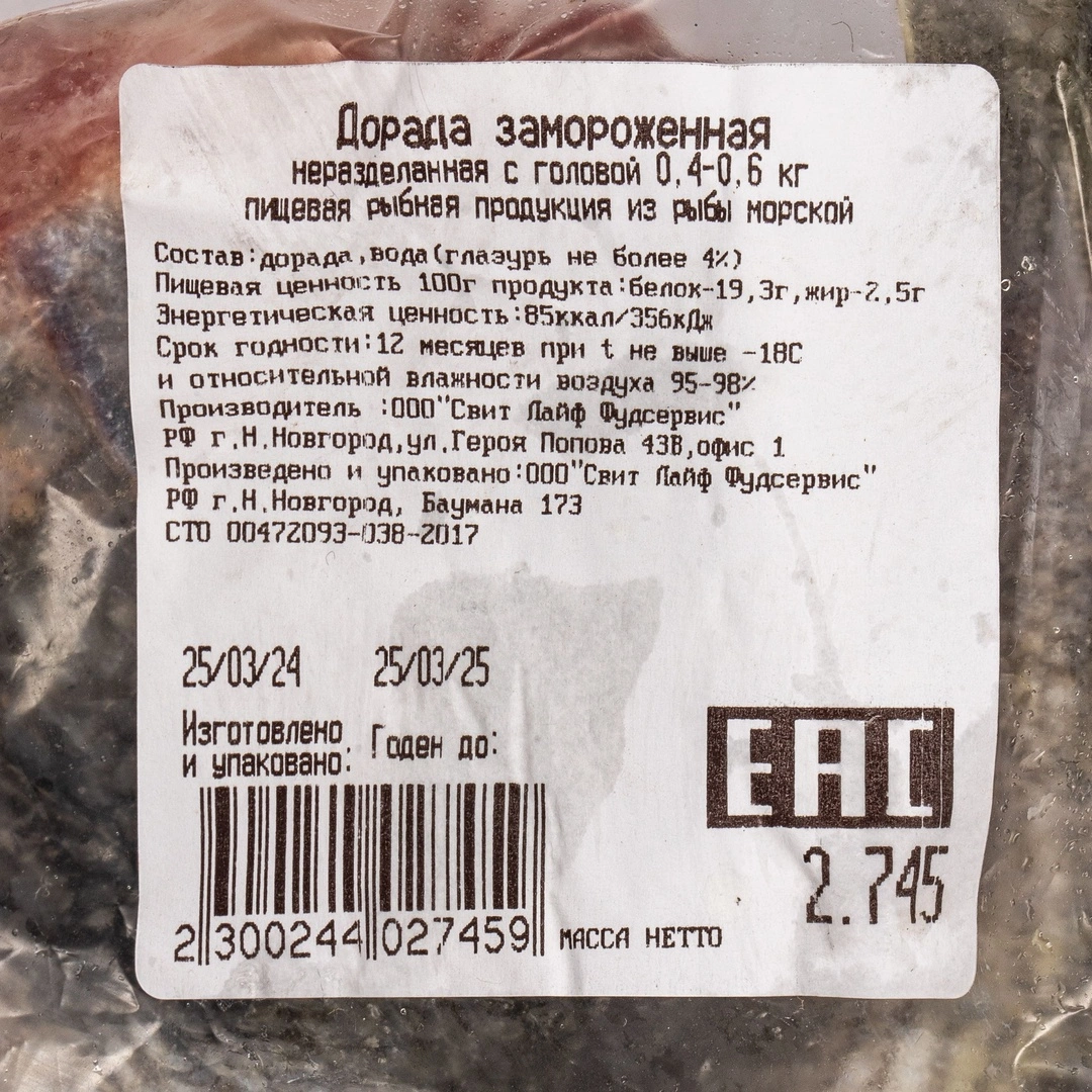 Дорадо непотрошеная свежемороженая, Турция ~ 400-600 г