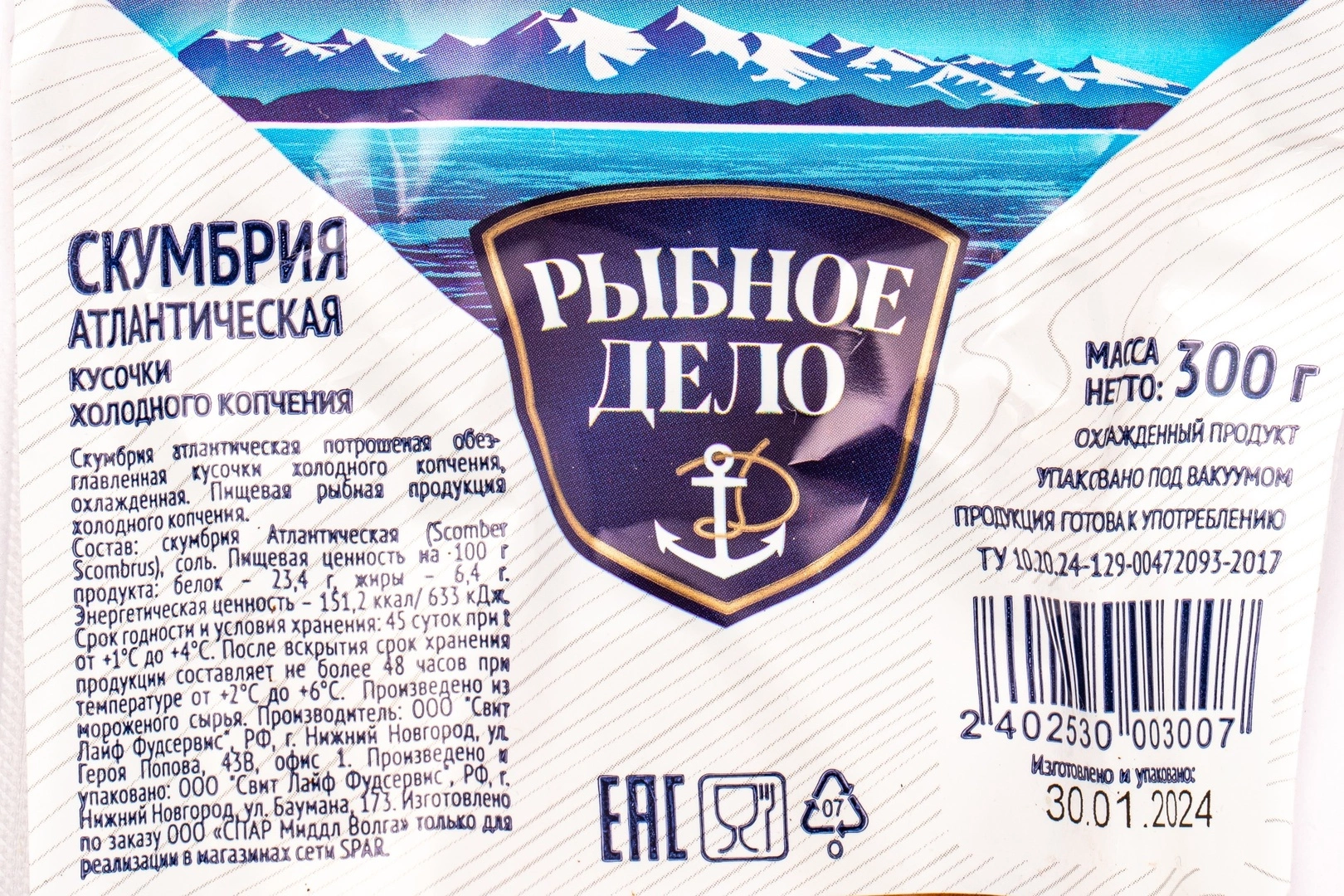 Скумбрия атлантическая холодного копчения нарезка «Рыбное Дело» - 300 г