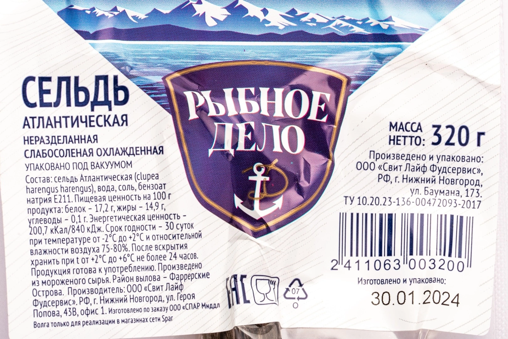 Сельдь Атлантическая (clupea harengus harengus), вода, соль, бензоат натрия Е211.