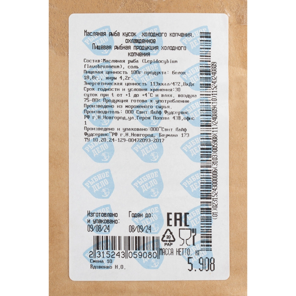 Рыба масляная холодного копчения «Рыбное Дело» - 1,5 кг